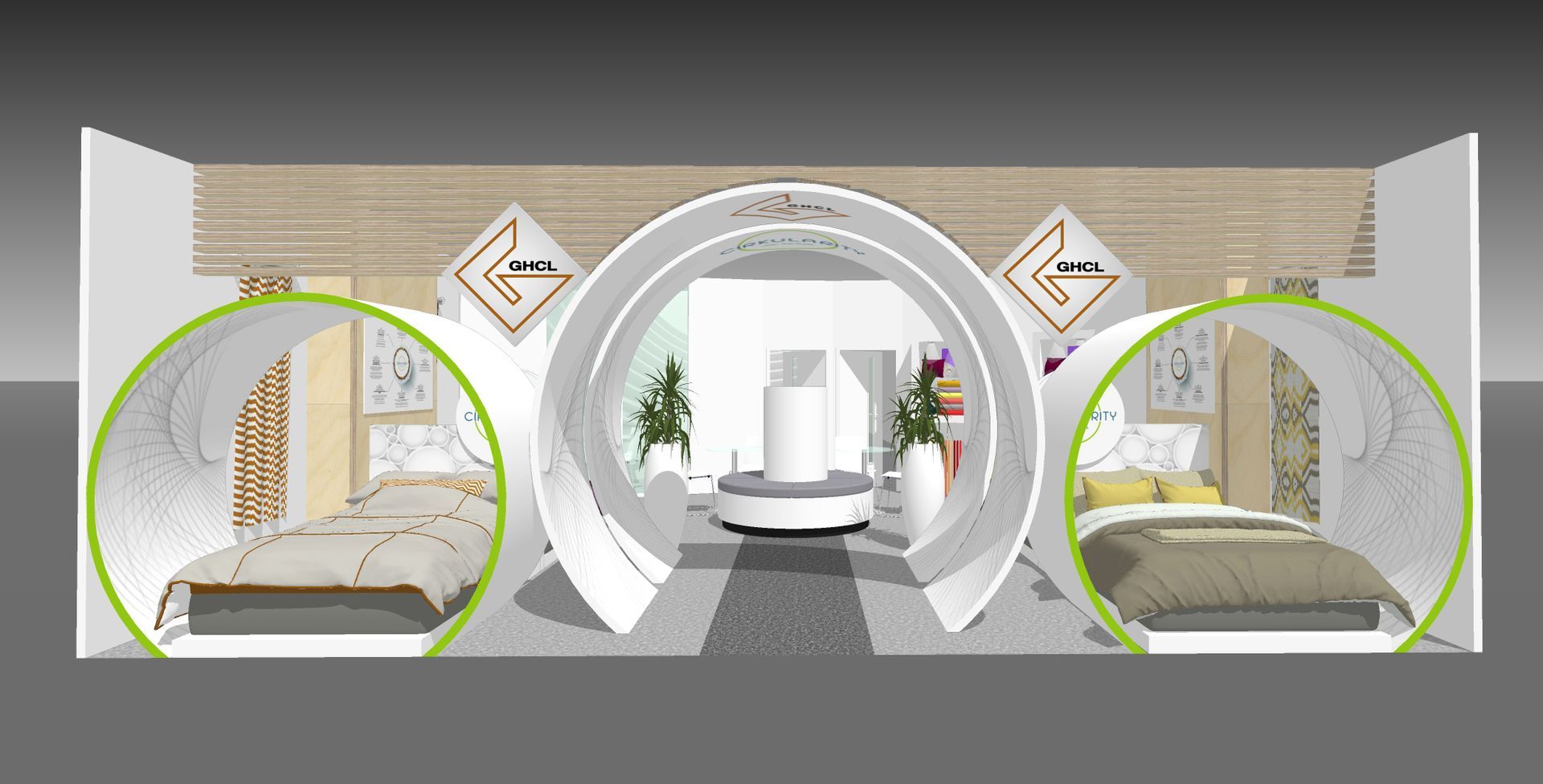 For GHCL’s Grace Home Fashion and REKUUP brands, we designed an exhibition stand that reflected their commitment to quality, style, and sustainability. The stand featured elegant displays that highlighted the sophistication of Grace Home Fashion, alongside dedicated areas showcasing REKUUP’s eco-friendly textile innovations. With a seamless blend of premium aesthetics and sustainable messaging, we created a space that engaged visitors and reinforced GHCL’s position as a leader in home textiles and responsible manufacturing.